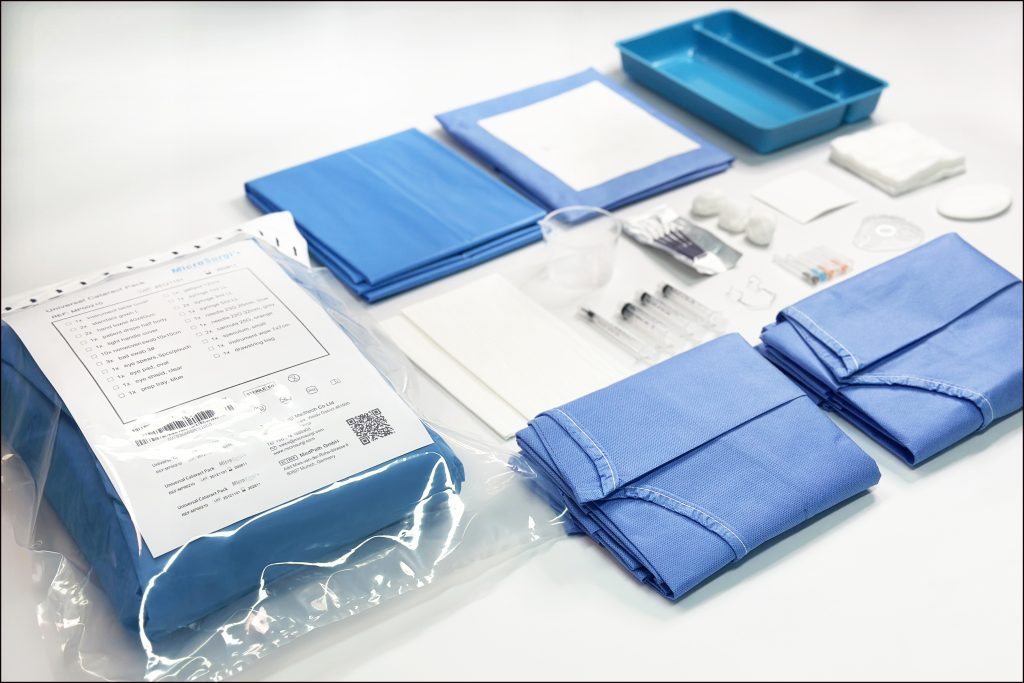 MicroSurgi procedure packs contain disposable components ranging from well selected surgical drapes, gowns, sponge, wipes, tubes, bowls, sharps, instruments and dressings.